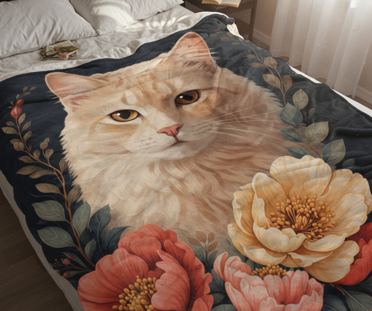 Upload a photo of your cat and we'll transform it into a beautiful, personalized blanket.