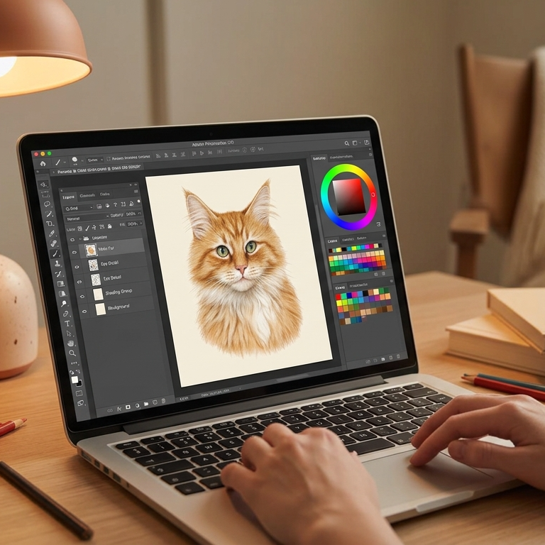 Upload a clear, well-lit photo of your cat. Our artists use every detail to capture their personality.