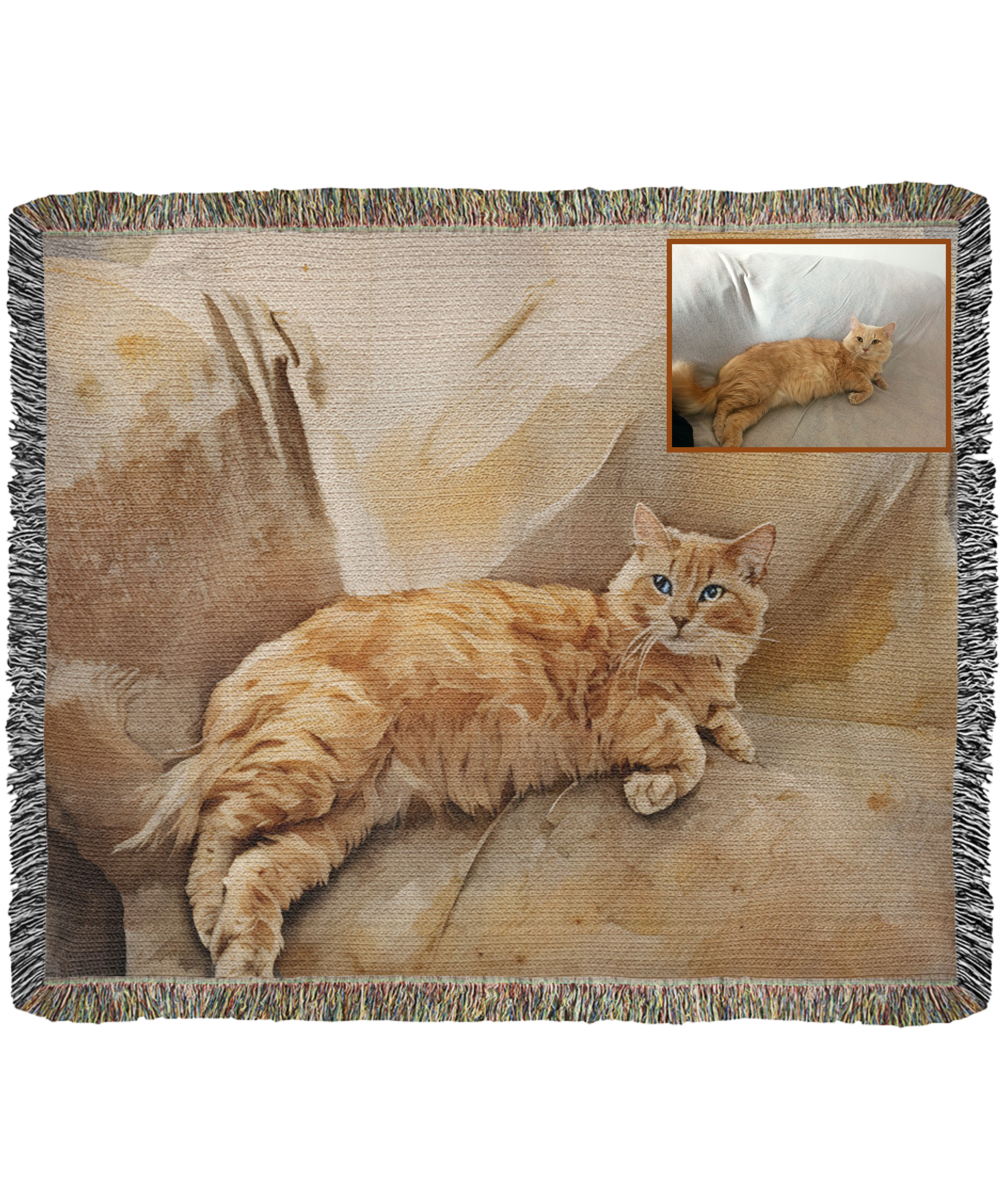 Your favorite cat photo, reimagined as art you can snuggle with. Our Custom Artsy Cat Portrait Blanket takes your picture and transforms it into a soft, painterly design woven onto a cozy blanket. The result feels like part artwork, part keepsake a way to celebrate your cat in a style that’s warm, personal, and a little magical.